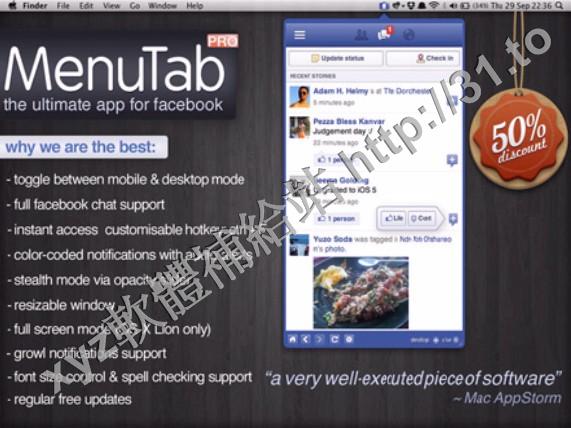 • MenuTab Pro for Facebook v5.1 MacOSX 英文正式版(Facebook 快速訪問軟體)